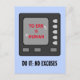 Une carte postale amusante avec une légende pour tous ceux qui s'entraînent à l'erg. L'image est une représentation de l'écran sur une machine à ramer intérieure avec le message 'TO ERRg IS inHUMAN' en rouge. Le texte ci-joint est "FAITES-LE : PAS D'EXCUSES", ou ceci peut être modifié pour votre propre texte ou un nom par exemple.