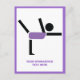 Cadeaux de gymnastique, carte postale verticale de l'interprète gymnastique qui présente une icône noire minimaliste d'un gymnaste portant un léotard violet avec une bordure violette autour. Ce design cool et moderne est un modèle et entièrement personnalisable. Personnalisez-le et changez le texte avec monogramme, nom ou message.