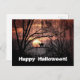 Cette carte postale présente une superbe photo d'un chat noir qui se promène sur une branche d'arbre avec un arrière - plan éffrayant, souhaitant un "Happy Halloween". Un excellent moyen d'envoyer des salutations Halloween à la famille ou à des amis!