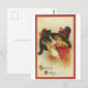 Carte Postale Halloween à l'ancienne, sorcière fille avec chat n