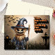 Cette carte postale d'Halloween amusante et un peu étrange présente le "Scarecrow Harvest Hunter", une figure malicieuse portant le casquette d'une sorcière, avec deux compagnons d'épouvantail menaçants se cachant dans l'arrière - plan. Placé sur un fond éffrayant clair de lune, le grunge orange en gras "La récolte vient pour vous !" ajoute une peur ludique, ce qui en fait le choix idéal pour envoyer des salutations Halloween ou ajouter une touche de charme éffrayant à votre collection saisonnière.