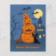 Carte Postale Halloween Citrouilles et chat noir