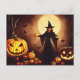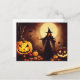 Carte Postale Halloween. Citrouilles et sorcière à la pleine lun