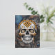 Invitation personnalisée de la fête d'Halloween. Crâne à sucre noir, orange et bleu Halloween invitations par carte postale.