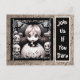 Invitations déplaisantes à la fête d'Halloween. Éffrayant petit fantôme garçon avec de gros yeux effrayants tenant des poupées super effrayantes.