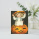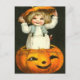 Image vintage d'une petite fille dans un citrouille