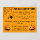 Cette carte postale éffrayante avec une araignée suspendue à une toile et deux citrouilles effrayants a des faits amusants sur Halloween. Parfait pour les petits et les grands.