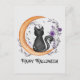 Carte Postale Halloween heureux - Chat noir sur la lune de crois