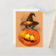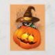 Carte Postale Halloween Kitty Witch and Pumkin Friend Postcard
