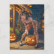 Carte Postale Halloween Monster Jack-o-Lantern & Bat Vixen Girl