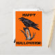 Ce design de carte postale Halloween Raven avec des oeuvres d'art noir sur orange est très frappant, et il est daté sur la branche qui peut être changé. Cette zone pourrait être customisée de initiales. L'oeuvre est mon dessin original, avec copyright et encre "Inky", un vrai corbeau.