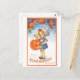 Cette carte postale est une reproduction d'une carte postale vintage d'Halloween qui présente une fille mignonne avec son chiot et un jack-o-lanterne.