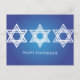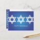 Cette carte postale Hanoukka est un excellent moyen d'envoyer un bonjour rapide sans le tracas d'une enveloppe. Paire avec un timbre assorti et il aura l'air coordonné et réfléchi. Design Hanoukka traditionnel avec 3 Etoiles de David (Magen David) traversant avec un peu plus de design en eux pour un look élégant.
