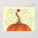 Un citrouille de bande dessinée mignon et coeur rouge avec une texture kaléidoscopique et tourbillonne sur une carte postale.