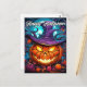 Cette carte postale Happy Halloween créative présente l'illustration d'un citrouille éffrayant et brillant, sous une pleine lune. N'hésitez pas à ajuster toutes les options disponibles comme vous le souhaitez.