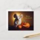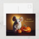 Carte Postale Happy Halloween. Kleine niedliche Maus mit Kürbis