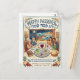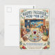 Celebrate the joy of Passover with this warm and whimsical folk art-style postcard that captures the heart of the holiday! The charming illustration features three generations of a Jewish family gathered around a seder table complete with a labeled seder plate, Haggadah, matzah basket, wine glasses, and candles. A magical window in the background depicts Moses parting the Red Sea under a moonlit sky, beautifully connecting the present celebration to the ancient story of Exodus. Hebrew text reads "Chag Pesach Sameach" alongside the English greeting, while the bottom message wishes a Pesach filled with "Joy, Freedom & New Beginnings." Framed with colorful folk-art florals, pomegranates, and olive branches, this postcard is a heartfelt and meaningful way to share Passover blessings with loved ones near and far.
