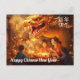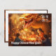Personnalisable à l'avant et à l'arrière Carte postale chinoise du Nouvel An avec une illustration enchanteresse qui capture l'esprit d'une joyeuse célébration chinoise du Nouvel An. Une famille chinoise joyeuse, avec des enfants, se réunit autour d'un repas festif. La table est ornée de plats traditionnels symbolisant la prospérité et la chance. Dans l'arrière - plan, un magnifique dragon doré se tisse gracieusement dans l'air, ajoutant une touche supplémentaire de magie et de fête à la scène.