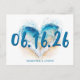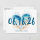 Tout le texte est personnalisable dans cette conception. Créez votre propre vague de coeur de style aquarelle sur une carte postale de plage pour votre mariage, sauvez les dates. Couleurs bleu et bleu marine avec une pointe de sable beige.
