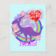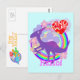 Bonjour Carte Postale Dinosaure Violet Fleur. Un mignon dinosaure de caricature violet Dilophosaurus avec des fleurs et des couleurs arc-en-ciel et un coeur rouge disant "J'aime les dinosaures" carte postale. Cette grande carte postale dinosaures est entièrement personnalisable ! Modifiez le texte "Bonjour !" et ajoutez vos images & textes ! Un joyeux petit Hey fleurs carte dinosaure, envoyez à un fan de dino!