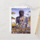Une belle carte postale de paysage classique avec la grande statue de Bouddha Daibutsu à Kamakura au Japon, peinte par le paysage préraphaélite américain et peintre à vie morte Henry Roderick Newman.