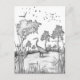 Carte Postale Heron Scene noir et blanc croquis fractalius