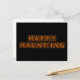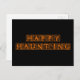 "Happy Hauny" texte ornemental en lettres orange vif, un design humoristique et sophistiqué pour une Halloween hantante
