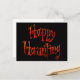 Texte "Happy Haunting" en lettres spectrales orange, avec quelques yeux fantomatiques, un dessin humoristique pour une Halloween obsédante