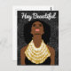 Femme noire En regardant vers le bas avec collier Tribal Or et cheveux longs naturels. Sensibilisation culturelle à la beauté du patrimoine africain.