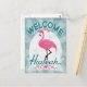 Hialeah Floride flamant rose. Dans le style d'affiches de voyage vintage, il dit "Bienvenue à Hialeah, Floride" en rose, blanc et vert menthe turquoise.