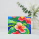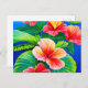Carte Postale hibiscus hawaïen fleurs rouges tropicales et vert