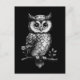 Carte Postale Hibou sur une branche florissante - noir et blanc