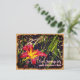 Une photo légèrement vintage d'un lis rouge et jaune avec des gouttes d'eau sur les pétales et les feuilles. Customisez le texte si vous le souhaitez.