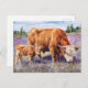 Carte Postale Highland Cow and Calf Purple Fleurs sauvages
