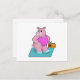 Très jolie carte du Lapin toujours pressé d'Alice . Belle qualité de l'impression en rose pastel.