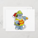 Très jolie carte du Lapin toujours pressé d'Alice . Belle qualité de l'impression en rose pastel.