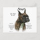 Votre race AKC préférée est le brindle Boxer. Le Boxer est un chien ludique et amusant qui est capable de communiquer ses sentiments avec son visage. Ses yeux noirs scintillants montrent son intelligence et ses émotions. Son visage se frotte en expressions de curiosité, d'excitation, de bonheur, de surprise ou de tristesse. Les boxeurs aiment particulièrement les enfants car ils sont ludiques et patients. Le Boxer est membre du Groupe de travail et a été reconnu pour la première fois par l'AKC en 1904. Les autres noms de la boîte incluent : German Boxer et Deutscher Boxer. C'est le cadeau parfait pour la race de chien, en parlant de Boxers. Un grand cadeau amoureux des chiens sur un t-shirt, sweat - shirt à capuche, tasse, autocollant, aimant, bouton, ornement - fait un grand cadeau de Noël Boxer.