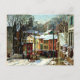 Carte postale vintage, Hiver à Gloucester, Massachusetts. Magnifique peinture de Frederick Mulhaupt d'une scène hivernale à Gloucester, avec chariot et chevaux sur une rue de ville enneigée.
