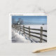 Cette carte postale crée une sensation d'hiver rural classique...un terrain clôturé et l'église de campagne juste au-dessus de la colline. Le ciel est bleu contre la neige blanche pure.