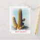 Photographie de cactus saguaro avec superposition de neige et de flocons de neige et personnalisable "Happy Holidays" en police de trait de brosse rouge.