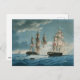 La bataille navale entre le HMS Endymion et le président américain eut lieu le 15 janvier 1815, pendant la guerre de 1812 entre les États-Unis et la Grande-Bretagne. La rencontre a eu lieu au large de Long Island, et il s'agissait d'une confrontation importante entre la Marine royale britannique et les États-Unis. Le HMS Endymion, une frégate de 40 canons de cinquième classe, a engagé le président américain, une frégate de 44 canons, dans une bataille féroce et longue qui a duré plusieurs heures. Cette rencontre fait partie d'une série de conflits navals entre les deux nations pendant la guerre de 1812. Malgré la disparité de la puissance de feu et la tentative du président de dépasser le navire britannique, le président américain a finalement été dépassé par le HMS Endymion. La bataille était intense, causant de lourdes pertes de part et d'autre. Bien qu'il ait infligé des dommages importants au navire britannique, le président américain s'est finalement rendu à l'Endymion en raison de la gravité des dommages qu'il a subis. Par la suite, le président américain a été capturé par les Britanniques et mis à leur service, tandis que l'Endymion a subi de graves dommages au cours de la bataille, nécessitant des réparations importantes par la suite. La bataille entre le HMS Endymion et le président de l'USS est l'un des principaux fiançailles navals de la guerre de 1812 et a mis en évidence les prouesses des deux forces navales en temps de conflit entre les États-Unis et la Grande-Bretagne.