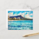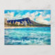 La plage de Waikiki, à Honolulu, Hawaii, est réputée pour son beau sable blanc, ses eaux bleu clair et ses vues imprenables sur Diamond Head. Cette carte postale d'art hawaiien fait partie d'une série de cartes postales créées dans un style art post-impressionniste et s'inspire de différents endroits dans le monde.