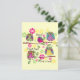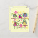 T-shirts, tasses, sacs, cartes, autocollants, sacs fourre-tout, magnets, mousepads, horloges murales, coussins, journaux, etc., colorés et amusants, cinq chouettes sur les branches entourées de fleurs de magenta, jaune et vert!