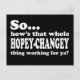 Comme le Dr Phil le demanderait...., "donc...comment est-ce que ce truc "hopey-changey" fonctionne pour vous ?" Ce design est disponible en autocollants pare-chocs, boutons, chemises, mousepads et plus encore.