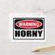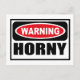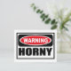 Attention Carte postale HORNY vous pouvez customiser à www.WarningSignShirts.com et comporte un panneau rouge et noir d'avertissement et HORNY en lettres noires en gras pour avertir le monde. Vous pouvez également customiser votre propre panneau d'avertissement Carte postale avec le texte que vous voulez.
