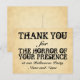 Une fête d'Halloween privilégie le design avec un thème d'horreur, qui dit : Merci pour l'horreur de votre présence... Un design Halloween amusant avec un usage humoristique des mots. L'image arrière - plan est ornée d'un motif motteté dans un style beige neutre, d'un style vintage vieillot. L'image arrière - plan est conçue pour avoir le motif de vieux papiers ou parchemin.