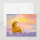 This hand painted watercolor postcard features a gentle cognac brown horse standing quietly in a soft lavender field beneath a glowing sunset sky. Created with calming color, open space, and delicate detail, this peaceful equestrian design captures the quiet beauty of horse and landscape. A lovely choice for horse lovers, nature enthusiasts, and anyone who appreciates serene watercolor artwork.