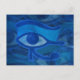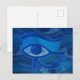 Carte postale avec l'oeil de Horus texturé bleu design abstrait. Ce design présente l'oeil Horus dans les tons bleus sur les yeux Horus défraîchis dans l'arrière - plan.