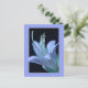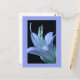 Cette carte postale florale présente une photographie ornée et en gros plan d'une fleur d'Hosta, mettant en valeur l'élégance délicate de ses pétales et de ses parties centrales (étamines et pistil) dans des teintes pastel douces de bleu et de violet sur fond noir, le tout encadré dans un design sophistiqué. Dans certaines cultures, la fleur symbolise l'amitié et la dévotion, ce qui fait de cette carte postale un choix idéal pour exprimer son amitié, envoyer des mots de remerciement, des vœux de rétablissement ou des félicitations d'anniversaire.
