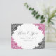 Create a beautiful hot pink and black wedding thank you postcard featuring elegant floral lace.